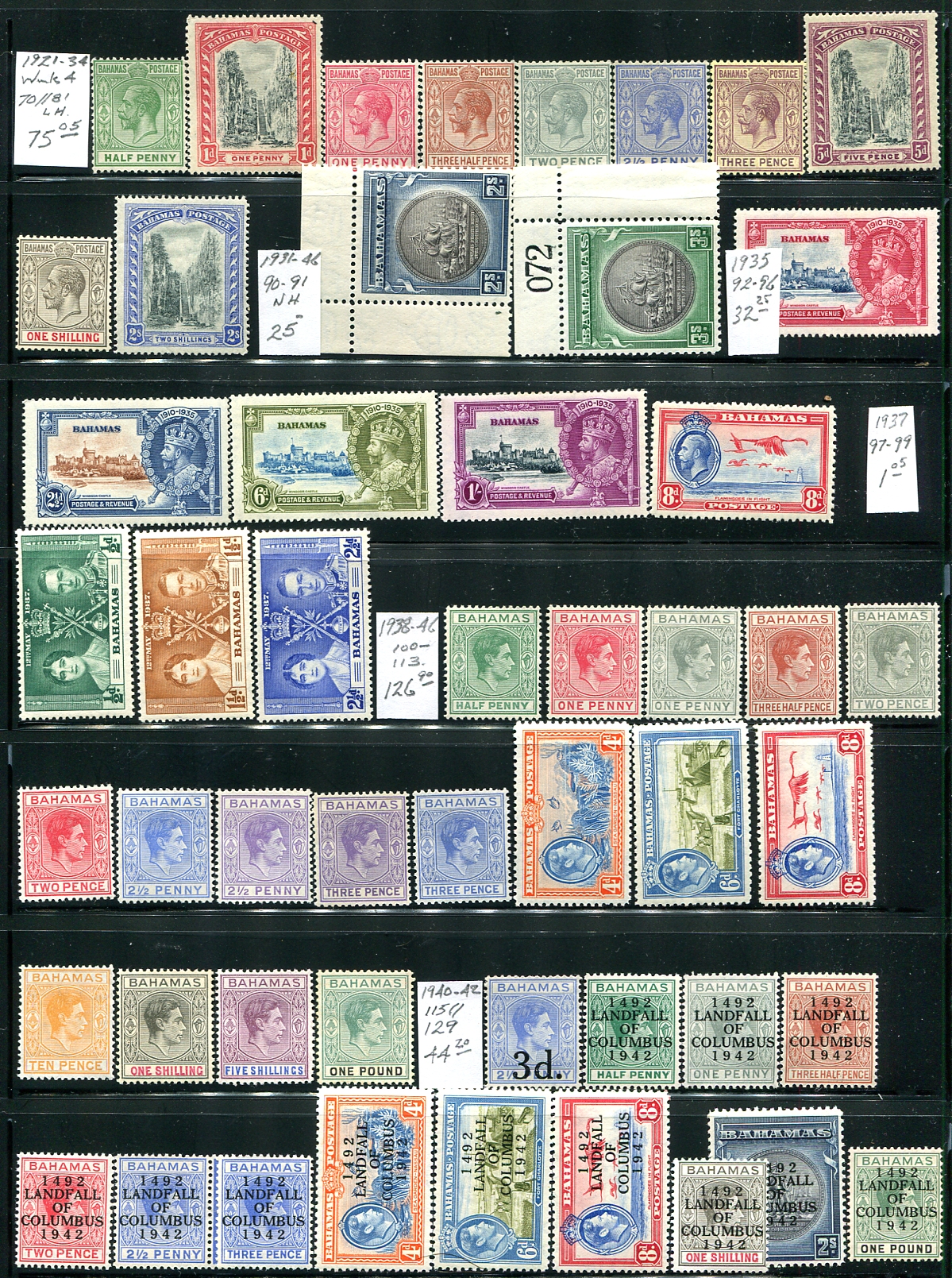 Clean mint collection of Bahamas, 1921-1976, containing 173 stamps in a few stockpages. This well organized collection contains mostly sets and partial sets ranging from Scott #70/397, noting some sets cataloguing $20 and up, including #158-173 (c.v. $115 total), along with a few "back of the book" issues. A lovely lot for British Commonwealth collectors. 2026 Scott US$716.00 =
