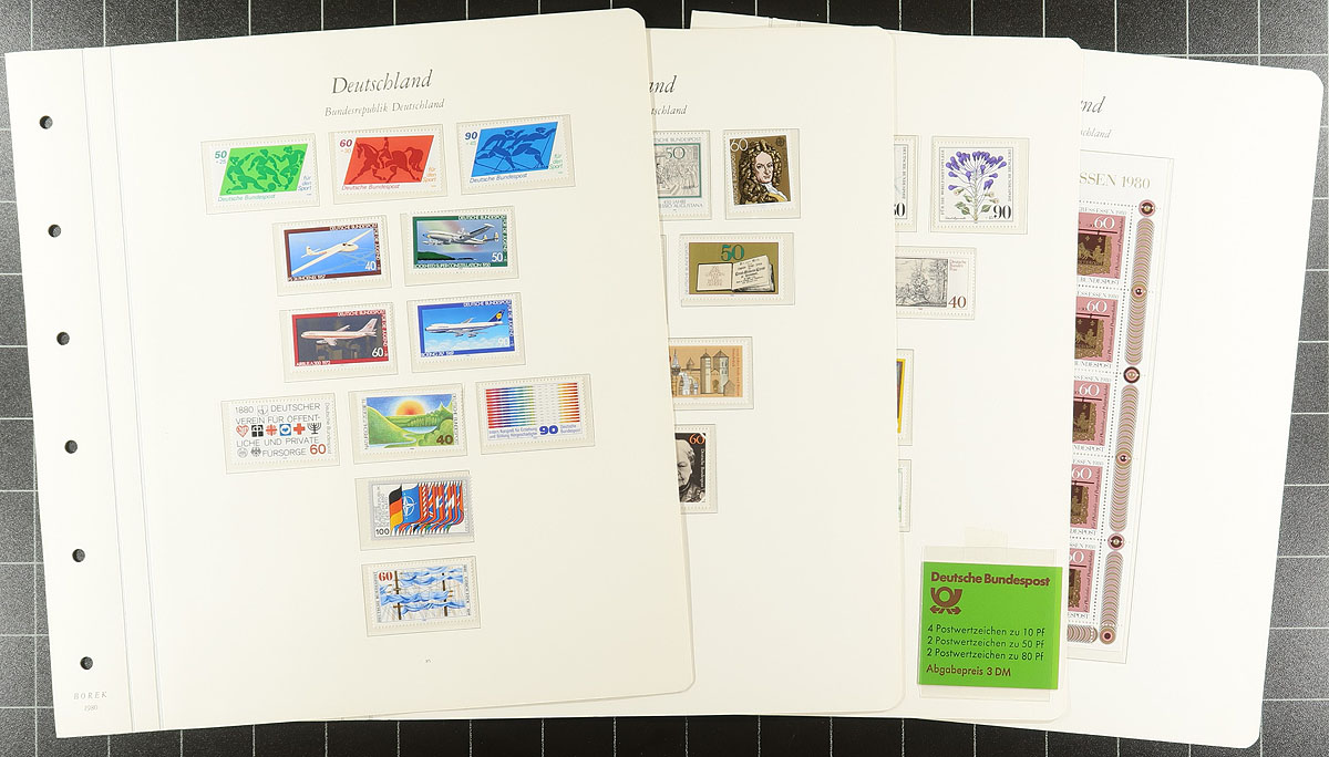 Accumulation of mint Germany, 1950's-2009, containing a few thousand stamps in a variety of formats including a stockbook, over 20 stock pages, and roughly 50 album pages with hingeless mounts. This collection has a bit of everything including Germany, Berlin, and DDR material, noting several sets, souvenir sheets, se-tenants, booklet panes, semi-postal, and more. A spot check indicated some material cataloguing $10 and up, with owner's 2018 Scott catalogue value for the lot totaling US$1,158.00 ($1563.60 CDN), with some duplication throughout. A nice lot for collectors and dealers alike. Estimate =