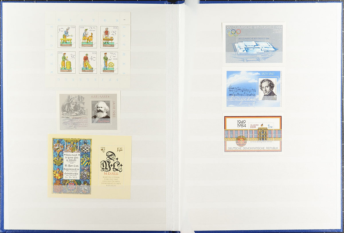 Accumulation of mint Germany, 1950's-2009, containing a few thousand stamps in a variety of formats including a stockbook, over 20 stock pages, and roughly 50 album pages with hingeless mounts. This collection has a bit of everything including Germany, Berlin, and DDR material, noting several sets, souvenir sheets, se-tenants, booklet panes, semi-postal, and more. A spot check indicated some material cataloguing $10 and up, with owner's 2018 Scott catalogue value for the lot totaling US$1,158.00 ($1563.60 CDN), with some duplication throughout. A nice lot for collectors and dealers alike. Estimate =