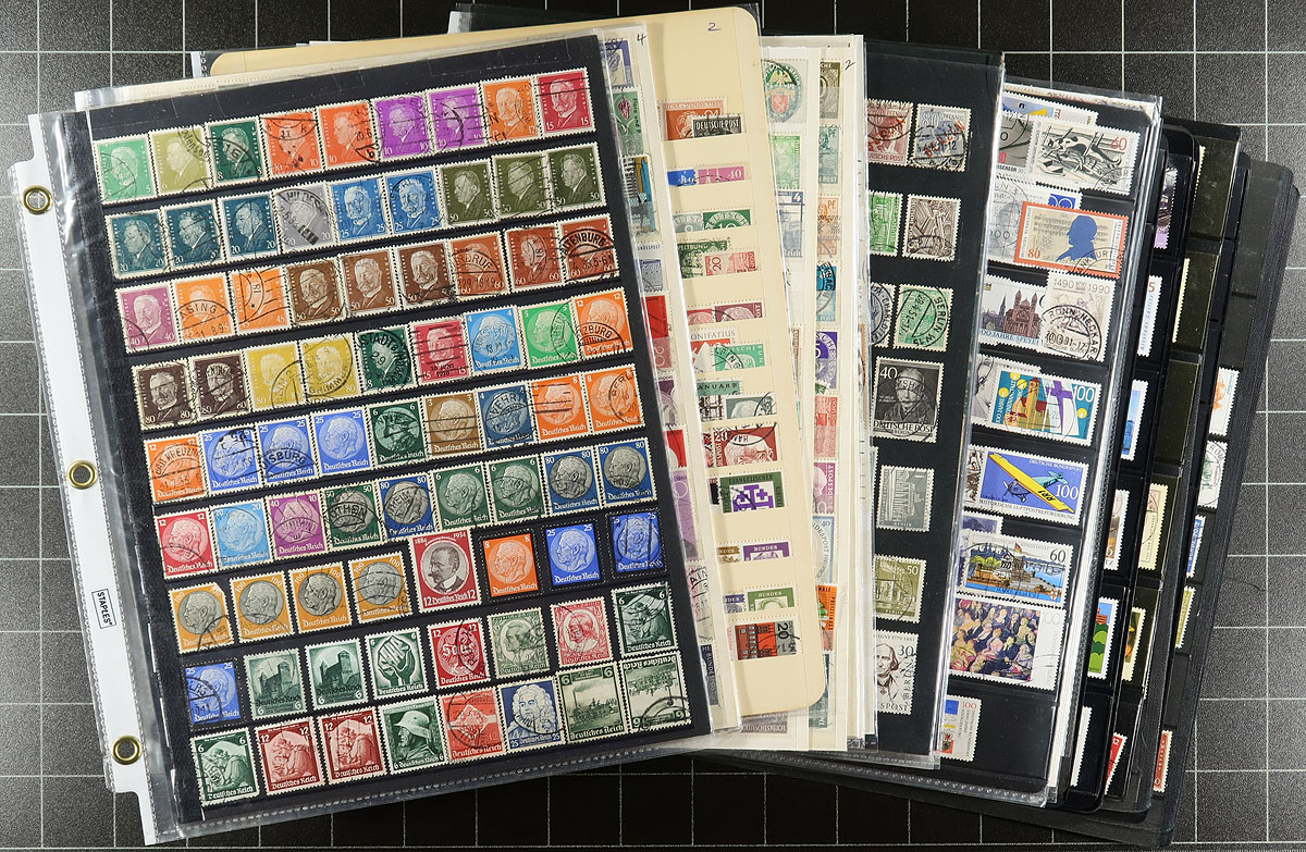 Accumulation of used Germany, 1875-2006, containing a few thousand stamps in roughly 40 stock pages. The collection contains a bit of everything including Germany, Berlin, and DDR material, noting semi-postals, souvenir sheets, and more. A spot check indicated some material cataloguing $10 and up, with owner's Scott 2018 catalogue value for the lot totaling US$2,871.00 ($3875.85 CDN). Mild duplication throughout the collection, with postmark interest including town cancels, etc. A nice lot for the Germany collector, overall fine to very fine. Estimate =