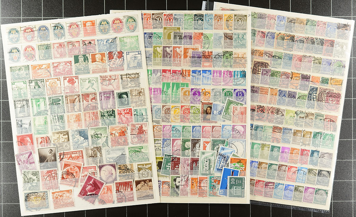 Accumulation of used Germany, 1875-2006, containing a few thousand stamps in roughly 40 stock pages. The collection contains a bit of everything including Germany, Berlin, and DDR material, noting semi-postals, souvenir sheets, and more. A spot check indicated some material cataloguing $10 and up, with owner's Scott 2018 catalogue value for the lot totaling US$2,871.00 ($3875.85 CDN). Mild duplication throughout the collection, with postmark interest including town cancels, etc. A nice lot for the Germany collector, overall fine to very fine. Estimate =