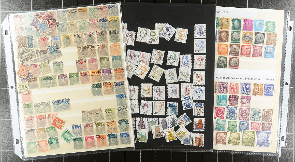 Accumulation of used Germany, 1875-2006, containing a few thousand stamps in roughly 40 stock pages. The collection contains a bit of everything including Germany, Berlin, and DDR material, noting semi-postals, souvenir sheets, and more. A spot check indicated some material cataloguing $10 and up, with owner's Scott 2018 catalogue value for the lot totaling US$2,871.00 ($3875.85 CDN). Mild duplication throughout the collection, with postmark interest including town cancels, etc. A nice lot for the Germany collector, overall fine to very fine. Estimate =
