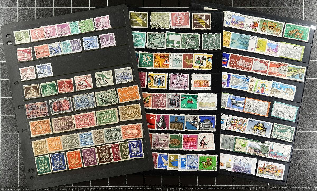 Accumulation of used Germany, 1875-2006, containing a few thousand stamps in roughly 40 stock pages. The collection contains a bit of everything including Germany, Berlin, and DDR material, noting semi-postals, souvenir sheets, and more. A spot check indicated some material cataloguing $10 and up, with owner's Scott 2018 catalogue value for the lot totaling US$2,871.00 ($3875.85 CDN). Mild duplication throughout the collection, with postmark interest including town cancels, etc. A nice lot for the Germany collector, overall fine to very fine. Estimate =