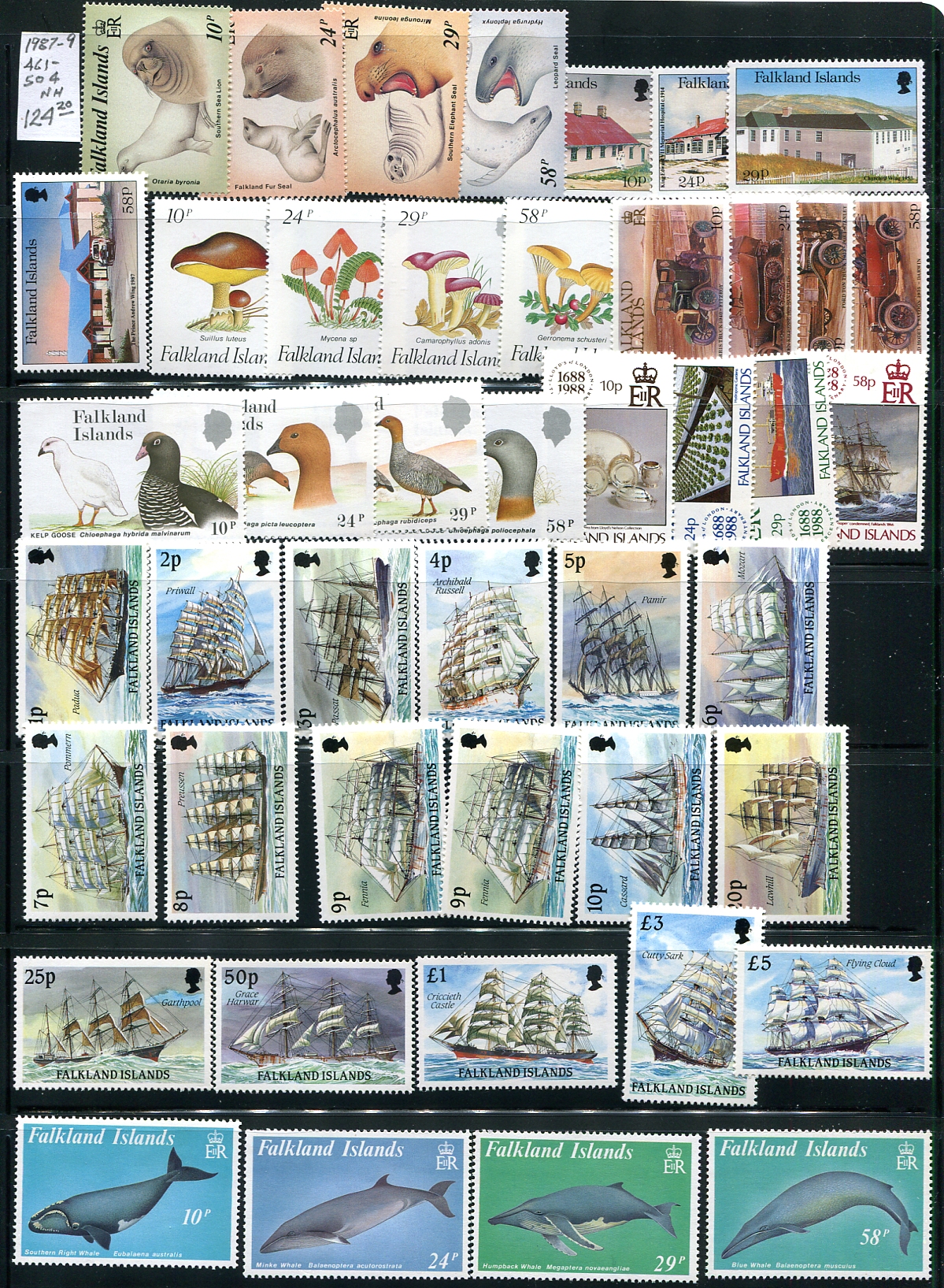 Marvelous mint collection of Falkland Islands, from 1935-1994 with 503 different stamps (including 9 souvenir sheets). A lovely run of singles and sets, largely complete for the period, all laid out and identified on 6 double-sided stockpages. Generally Lightly Hinged up to 1955, then Never Hinged thereafter. 2026 Scott US$1235.15 =