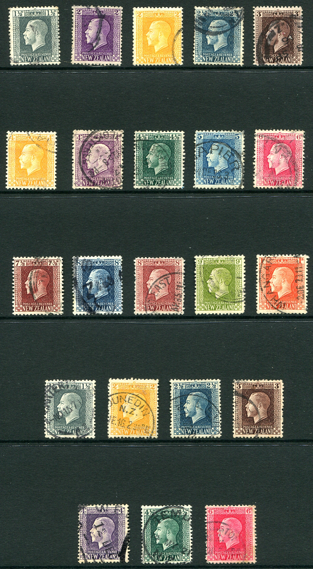 Complete used set of the 1915-1922 George V series (perf 14x 13 ½), plus 7 different examples of the Scott catalogue sub-listed perf 14x14 ½ types. A very tidy group of these issues, with stamps generally selected for better CDS postmarks. 2025 Scott US$369.00 =
