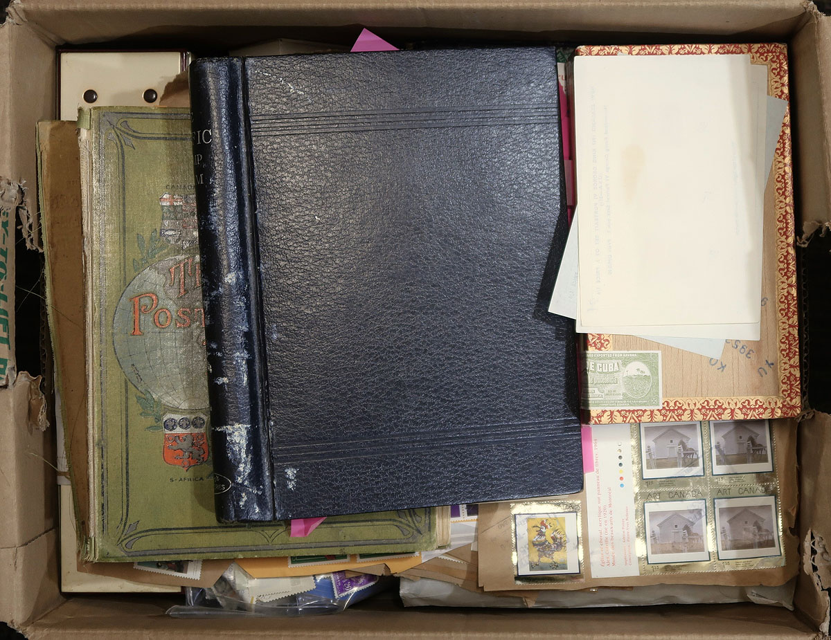 Accumulation of multiple thousands of worldwide stamps in a variety of formats, with on and off paper material in albums, glassines, 102 cards, plastic bags, small boxes, etc. This is a bit of a mystery box and a quick check indicated better representation from Austria, Australia, Canada, New Zealand, Germany, and much more, with material ranging from the 1920's onwards. A bit of a hodgepodge of a lot, which would make a nice winter project for the worldwide collector. Estimate =