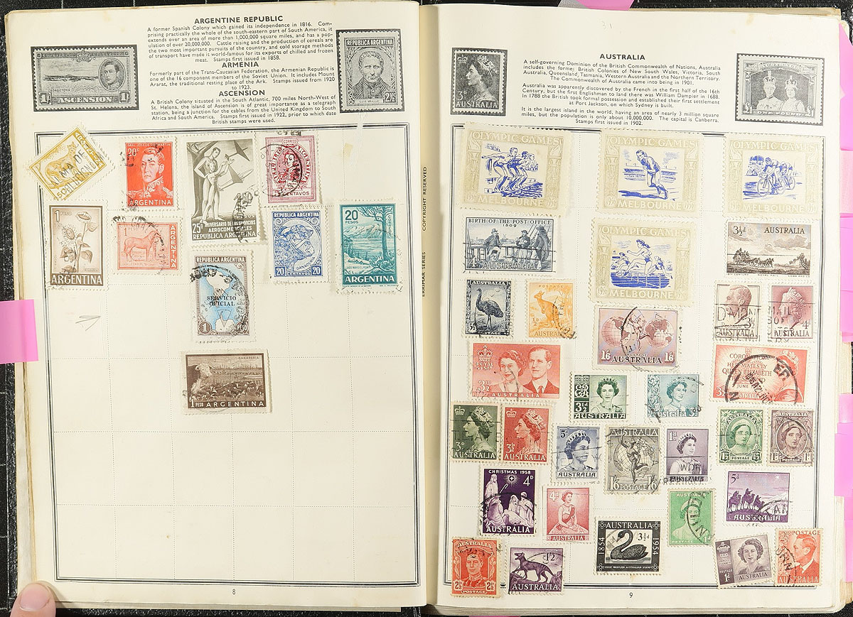 Accumulation of multiple thousands of worldwide stamps in a variety of formats, with on and off paper material in albums, glassines, 102 cards, plastic bags, small boxes, etc. This is a bit of a mystery box and a quick check indicated better representation from Austria, Australia, Canada, New Zealand, Germany, and much more, with material ranging from the 1920's onwards. A bit of a hodgepodge of a lot, which would make a nice winter project for the worldwide collector. Estimate =