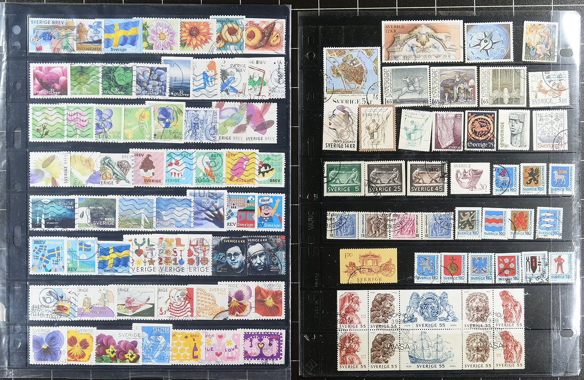 Nice lot of used Sweden, 1880's-2017, containing many hundreds of stamps in several stock pages and 102 cards. The lot generally ranges from Scott #39/2795, noting many sets and a decent selection of modern issues. Postmark interest includes bridge and other town postmark types, including some "socked on the nose". A nice lot for the used collector. Owner's older 2019 Scott US$1,195.00 =