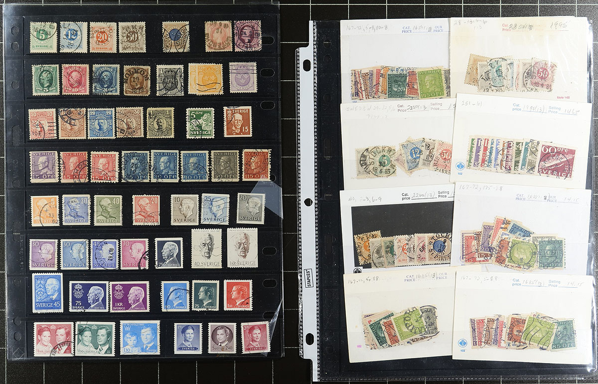 Nice lot of used Sweden, 1880's-2017, containing many hundreds of stamps in several stock pages and 102 cards. The lot generally ranges from Scott #39/2795, noting many sets and a decent selection of modern issues. Postmark interest includes bridge and other town postmark types, including some "socked on the nose". A nice lot for the used collector. Owner's older 2019 Scott US$1,195.00 =