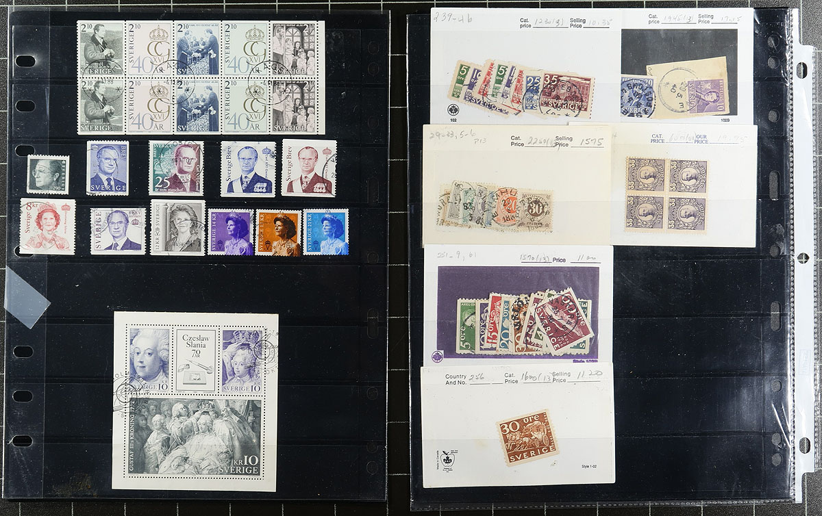 Nice lot of used Sweden, 1880's-2017, containing many hundreds of stamps in several stock pages and 102 cards. The lot generally ranges from Scott #39/2795, noting many sets and a decent selection of modern issues. Postmark interest includes bridge and other town postmark types, including some "socked on the nose". A nice lot for the used collector. Owner's older 2019 Scott US$1,195.00 =