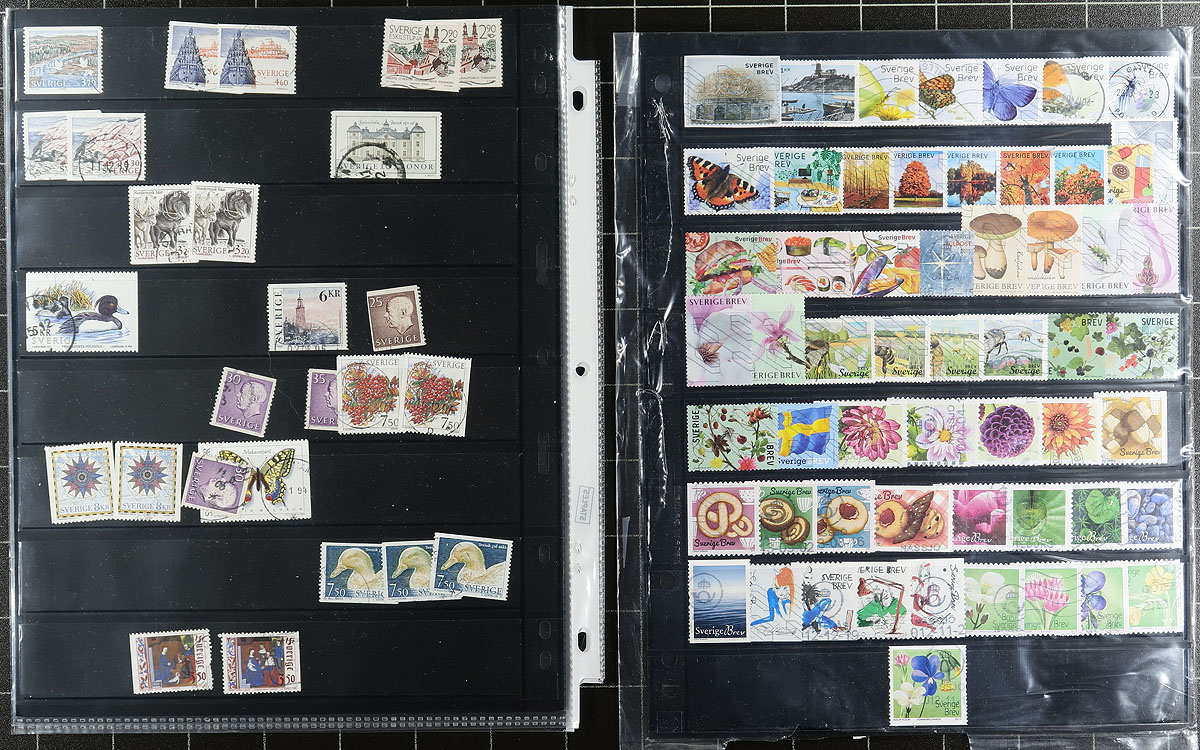 Nice lot of used Sweden, 1880's-2017, containing many hundreds of stamps in several stock pages and 102 cards. The lot generally ranges from Scott #39/2795, noting many sets and a decent selection of modern issues. Postmark interest includes bridge and other town postmark types, including some "socked on the nose". A nice lot for the used collector. Owner's older 2019 Scott US$1,195.00 =