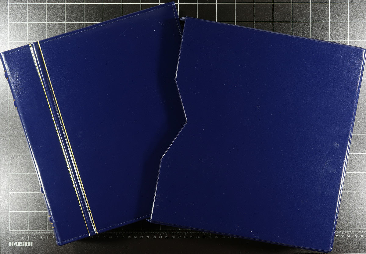 Bankers box full of used to like new items for the stamp collector. Includes 7 stockbooks of various sizes (one brand new still wrapped in original packaging), a Lighthouse binder with roughly 65x divided Vario-style stock pages (roughly 5" x 3 3/4" sized), and roughly 100 manila stock pages (some loose, with the majority in an old style album, pen notations per row on each page). A still useful lot for all collectors. Estimate =