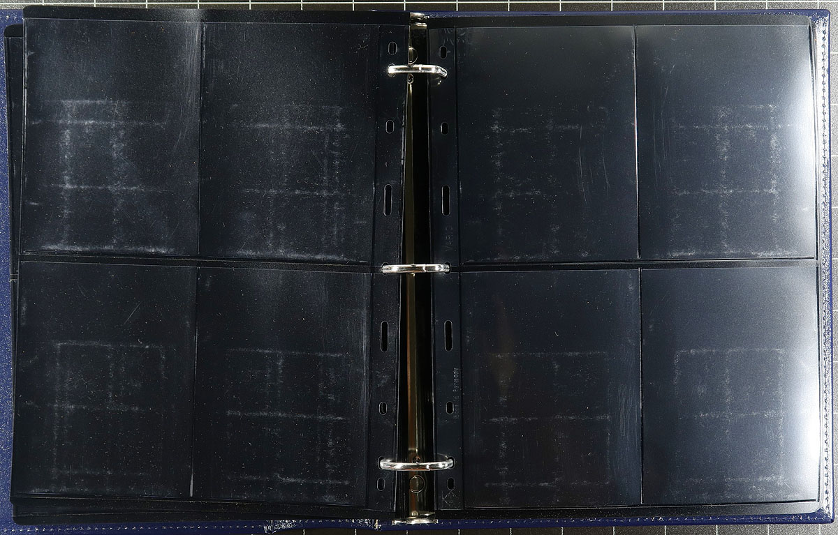 Bankers box full of used to like new items for the stamp collector. Includes 7 stockbooks of various sizes (one brand new still wrapped in original packaging), a Lighthouse binder with roughly 65x divided Vario-style stock pages (roughly 5" x 3 3/4" sized), and roughly 100 manila stock pages (some loose, with the majority in an old style album, pen notations per row on each page). A still useful lot for all collectors. Estimate =