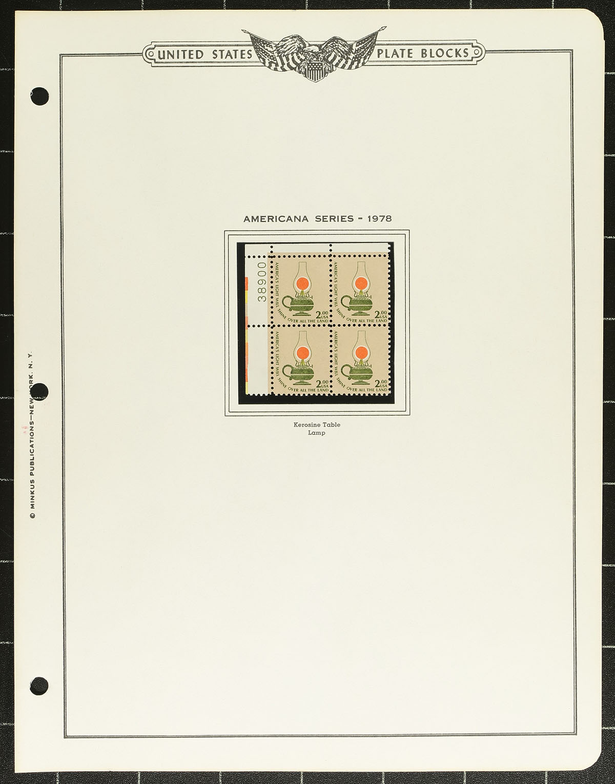 Large collection / accumulation of never hinged United States plate blocks, 1940's-1980, containing several hundred of plate blocks (many in larger blocks and multiples). The lot generally ranges from Scott #943/1841 in two formats, noting a few hundred in hingeless album pages (from 1974 to 1980), and many hundred in individual glassines. Catalogue value would be several hundred dollars, with face value alone just over US$200.00 A nice clean lot for all collectors. Estimate =