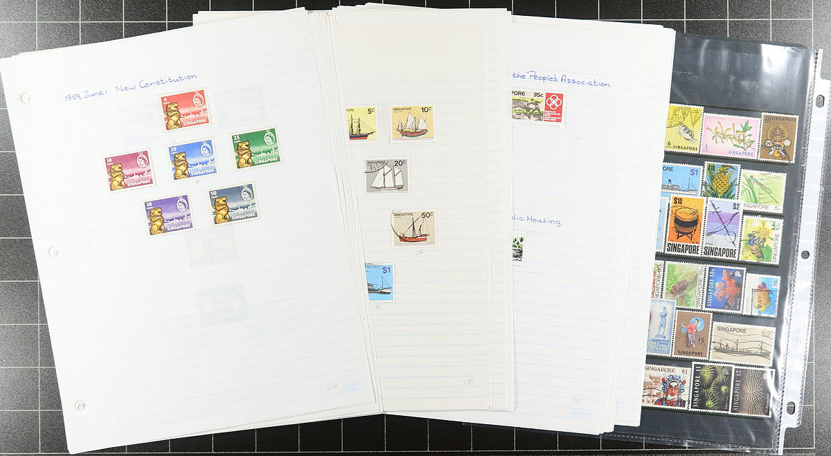 Nice accumulation of mint and used South Asian stamps, containing many hundreds of stamps in a variety of formats including album and stock pages, 102 cards, glassines, and more. The lot contains countries from L to V, with better representation from Korea (including some North Korea), Philippines, Sri Lanka, Tuvalu, along with other French and British Commonwealth areas. The majority of material appears used from the 1930's up to the 1990's, but did see mint sets, with some items cataloguing in the $10 range, leaving better finds to the dedicated collector. A nice lot for the worldwide collector. Estimate = 180