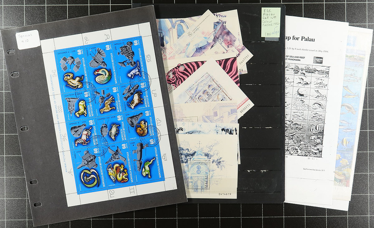 Attractive accumulation of roughly 250 primarily never hinged worldwide souvenir sheets, mostly with an Asia flavour with better representation from Korea (including some North Korea with CTO cancels), along with Philippines, Liberia, and more. The material generally ranges from the 1970's to the 1990's, with material possible on either side of the given range, with a spot check indicating a few sheets cataloguing $10 and up. A nice lot for thematic and topical collectors as we note many suitable subjects including nature, transportation, sports, scouts, and more. Estimate =