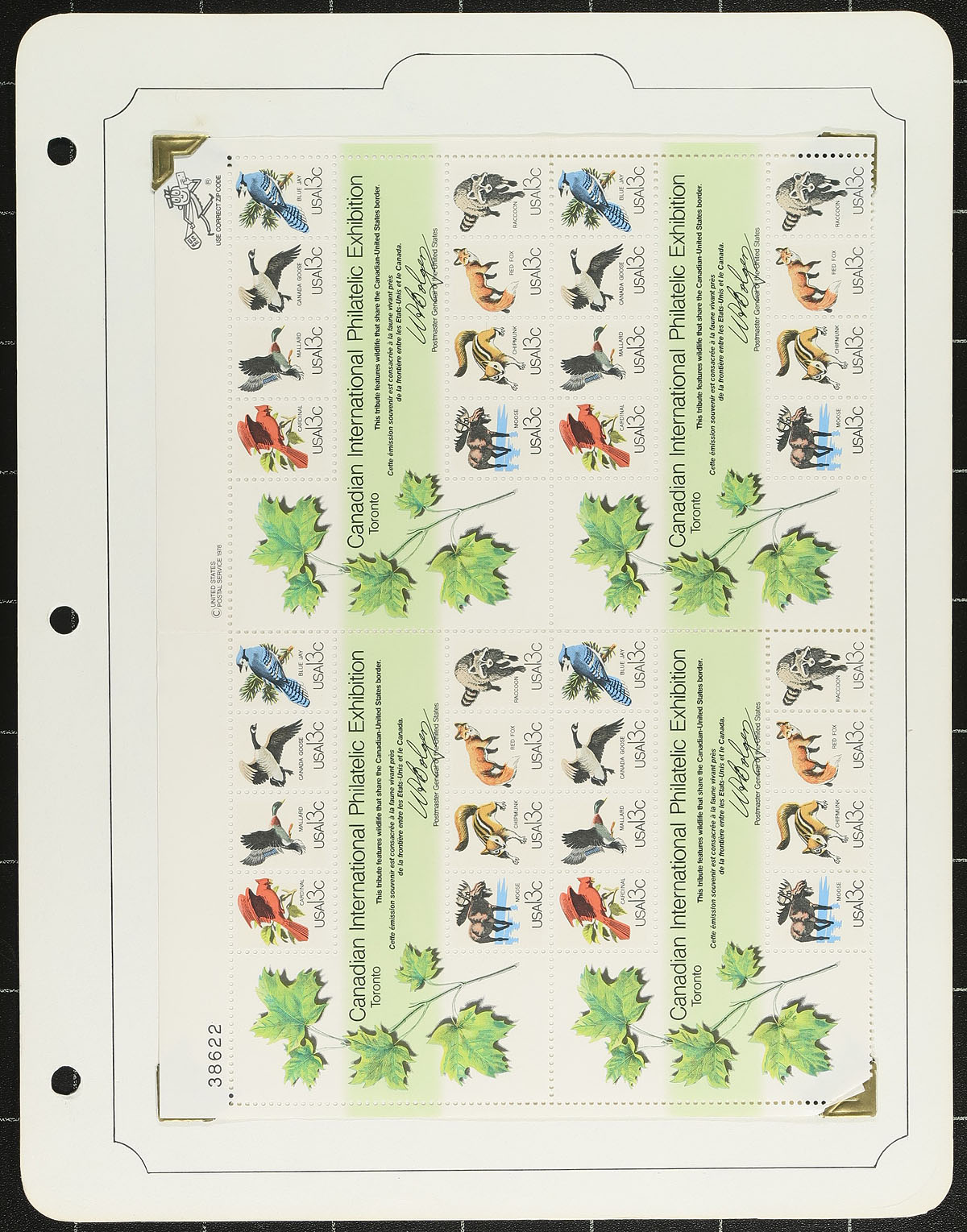 Consignment remainder of primarily never hinged United States, 1920's-1980's, containing many hundreds of stamps in many album or stock pages housed in a binder. The lot has a little bit of everything including singles, sets and partial sets, souvenir sheets, booklet panes, and back of the book issues. A spot check indicated a few items cataloguing $10 and up, with face value alone in excess of US$160.00. A good starter lot with a wide variety of items for all collectors. Overall fine to very fine. Estimate =