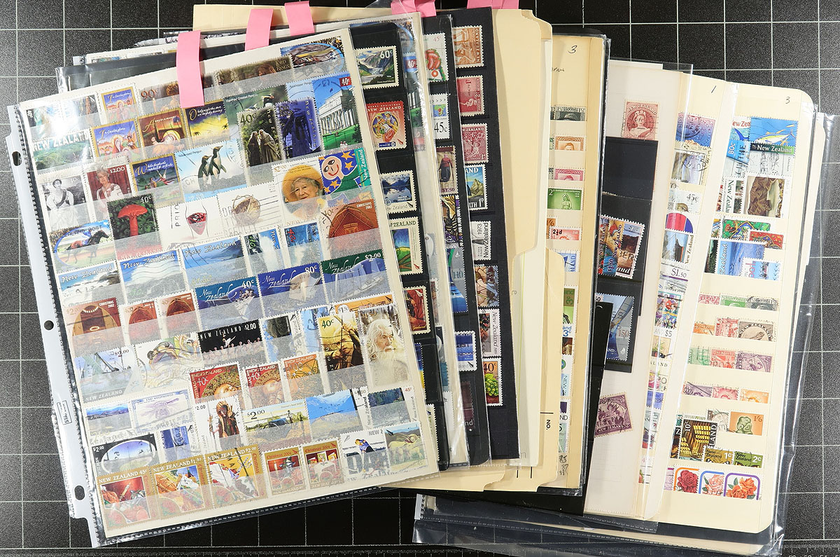 Accumulation of used New Zealand, 1880's-2015, containing roughly 1,650 stamps in several manila, stock, or album pages. The lot generally ranges from Scott #62/2559, including semi-postals and several other back of the book items, along with a decent representation of modern issues. A spot check indicated some items cataloguing $5 to $15 and up. An interesting group, with potential finds for the dedicated collector. Online photos show a sampling and an overview. Overall fine to very fine. Owner's older 2018 Scott US$1,848.00 =