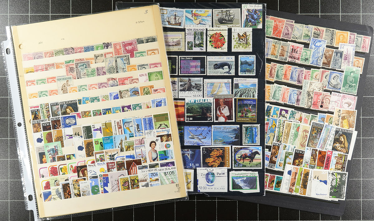 Accumulation of used New Zealand, 1880's-2015, containing roughly 1,650 stamps in several manila, stock, or album pages. The lot generally ranges from Scott #62/2559, including semi-postals and several other back of the book items, along with a decent representation of modern issues. A spot check indicated some items cataloguing $5 to $15 and up. An interesting group, with potential finds for the dedicated collector. Online photos show a sampling and an overview. Overall fine to very fine. Owner's older 2018 Scott US$1,848.00 =