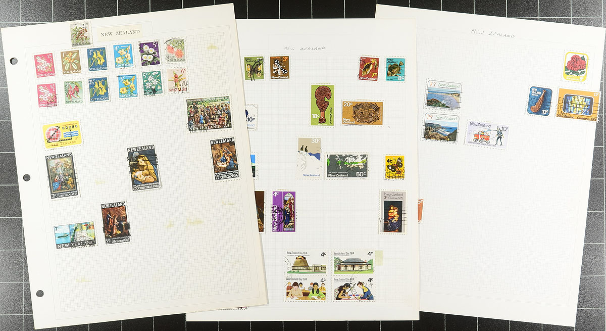 Accumulation of used New Zealand, 1880's-2015, containing roughly 1,650 stamps in several manila, stock, or album pages. The lot generally ranges from Scott #62/2559, including semi-postals and several other back of the book items, along with a decent representation of modern issues. A spot check indicated some items cataloguing $5 to $15 and up. An interesting group, with potential finds for the dedicated collector. Online photos show a sampling and an overview. Overall fine to very fine. Owner's older 2018 Scott US$1,848.00 =