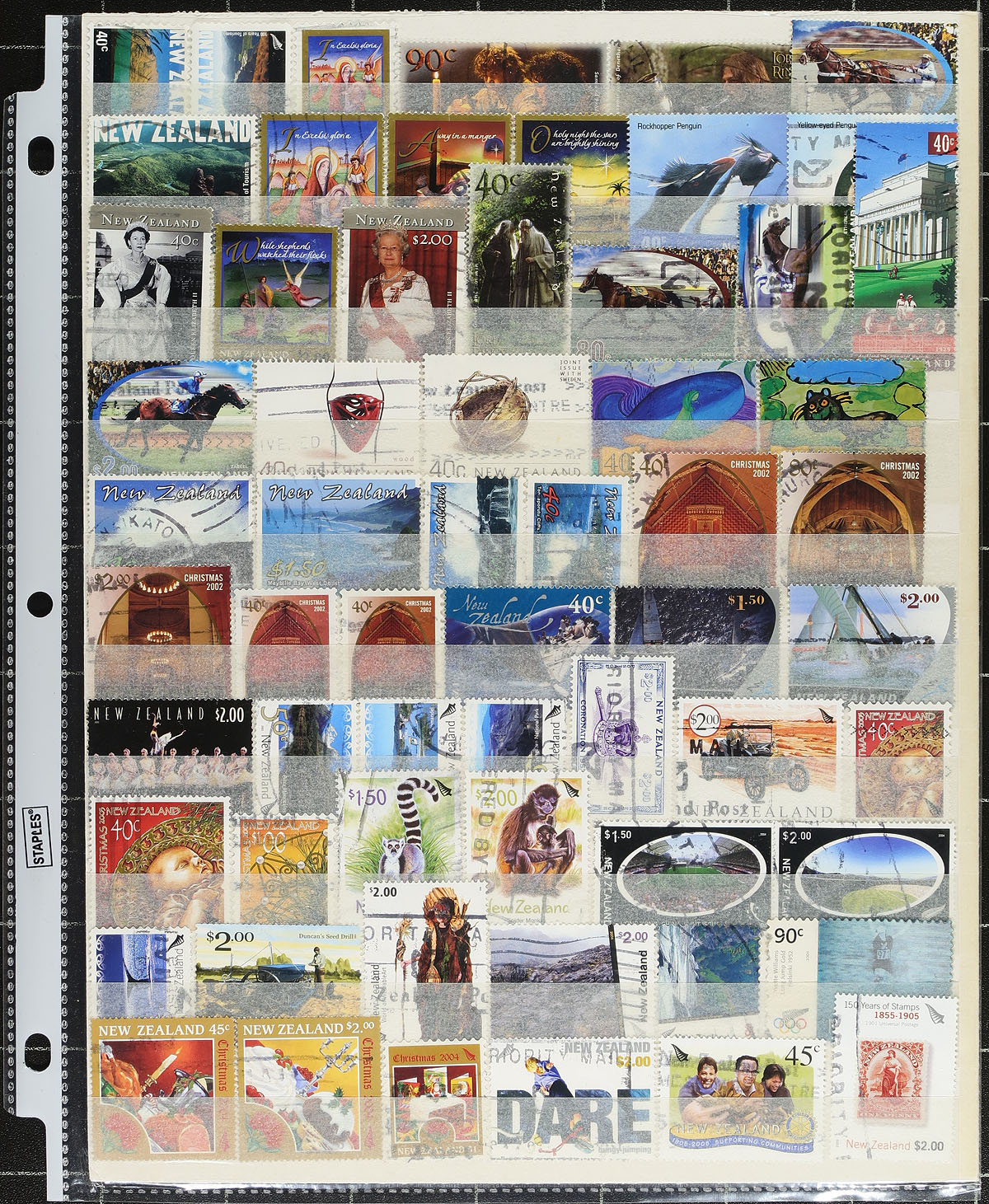 Accumulation of used New Zealand, 1880's-2015, containing roughly 1,650 stamps in several manila, stock, or album pages. The lot generally ranges from Scott #62/2559, including semi-postals and several other back of the book items, along with a decent representation of modern issues. A spot check indicated some items cataloguing $5 to $15 and up. An interesting group, with potential finds for the dedicated collector. Online photos show a sampling and an overview. Overall fine to very fine. Owner's older 2018 Scott US$1,848.00 =