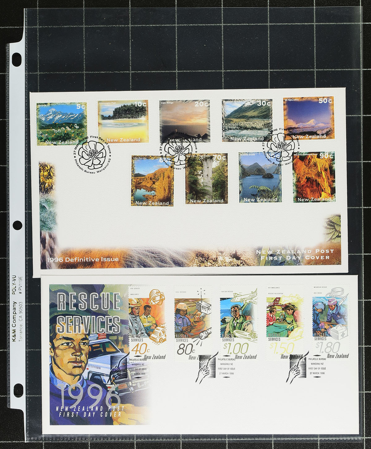 Collection of roughly 350 New Zealand first day covers, 1930-1990's, noting mostly sets frankings, along with souvenir sheets, joint issues, exhibition events, and more. Some of the covers have been priced for retail ranging from $10 to $20 and up. The lot contains several colourful cachets and frankings, suitable for first day cover, thematic, and topical collectors. A few covers have a few small faults, overall fine to very fine. Estimate =