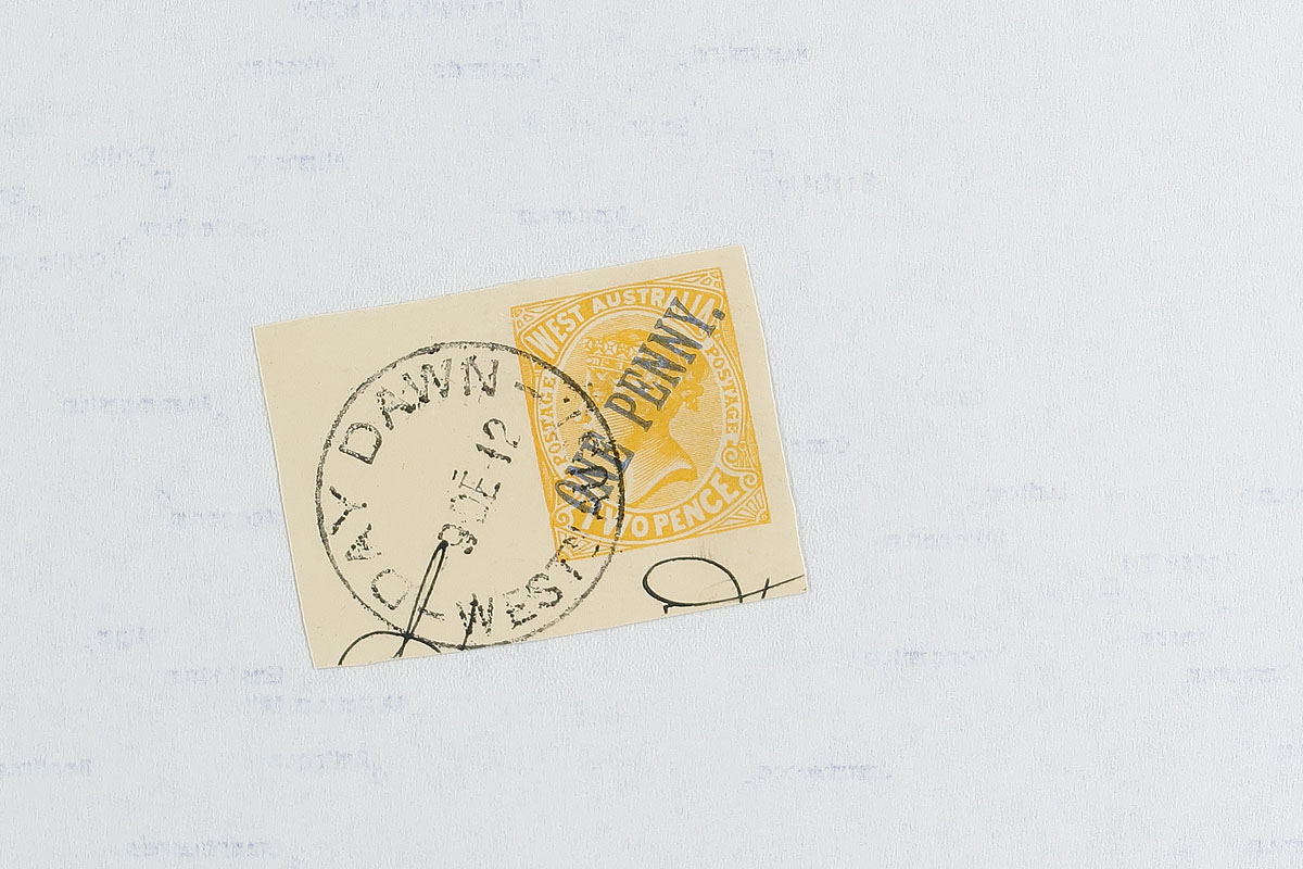 Western Australia. Collection of postmarks from Western Australia, 1890's-1970's, containing a few hundred stamps (on and off piece), and roughly 40 covers housed in a thick binder. The lot is organized alphabetically containing over 55 different town postmarks ranging from A to Y (represented by at least one stamp), noting several Western Australia State stamps, with the majority of material ranging from the 1890's up to the 1950's. Just a few towns include Beverley, Dardanup, Geraldton, Pinjarra, Wagin, Yalgoo, and more, noting cds town cancels, and other postmark types. The lot includes maps of all the locations and towns within the collection. An interesting lot for the specialist, with online photos showing a small sampling. Estimate =