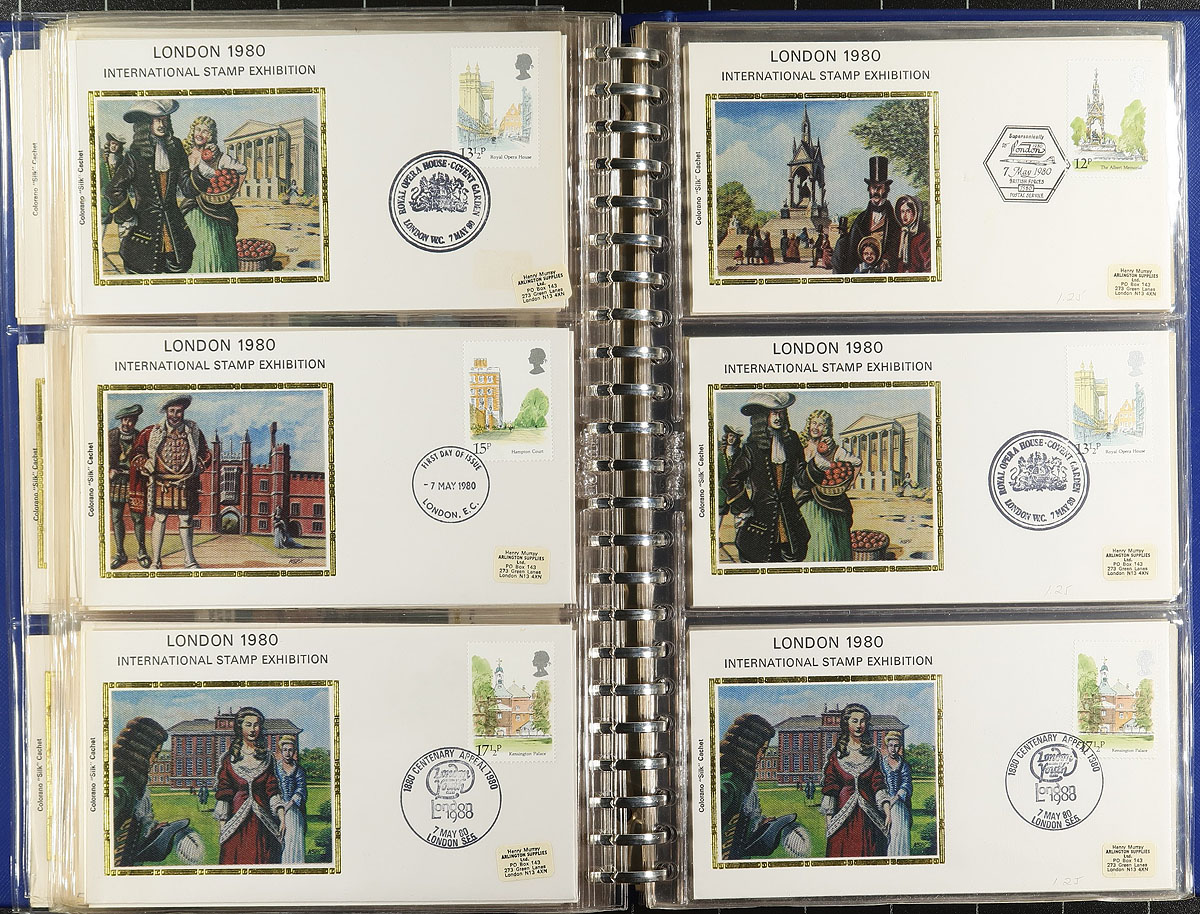Collection of roughly 250 Great Britain first day covers, 1970's-2000, in two Royal Mail First Day Cover albums, and two other albums. The collection consists of roughly 125 Colorado Silk cachet first day covers in two albums, ranging from 1976-1981, with the remaining first day covers containing mostly sets frankings from the 1980's to 2000. A nice clean lot for collectors and dealers alike. Estimate =
