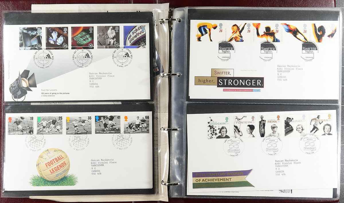Collection of roughly 250 Great Britain first day covers, 1970's-2000, in two Royal Mail First Day Cover albums, and two other albums. The collection consists of roughly 125 Colorado Silk cachet first day covers in two albums, ranging from 1976-1981, with the remaining first day covers containing mostly sets frankings from the 1980's to 2000. A nice clean lot for collectors and dealers alike. Estimate =