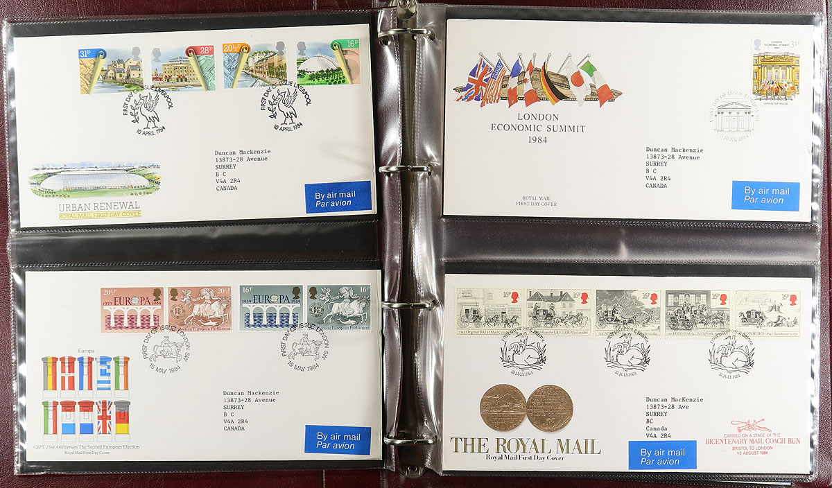 Collection of roughly 250 Great Britain first day covers, 1970's-2000, in two Royal Mail First Day Cover albums, and two other albums. The collection consists of roughly 125 Colorado Silk cachet first day covers in two albums, ranging from 1976-1981, with the remaining first day covers containing mostly sets frankings from the 1980's to 2000. A nice clean lot for collectors and dealers alike. Estimate =