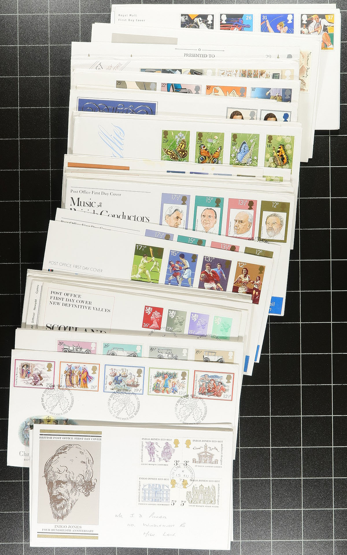 Accumulation of roughly 600 Great Britain first day covers filling a bankers box, 1960's-2000's, includes roughly 300 Fleetwood cachet covers in 3 large packs, Herm Island covers, Regionals, etc. Many of the covers have set frankings, along with singles, booklet pane, and souvenir sheets. Some minor duplication possible, with a few covers having small corner bends. A nice lot for collectors and dealers alike. Estimate =