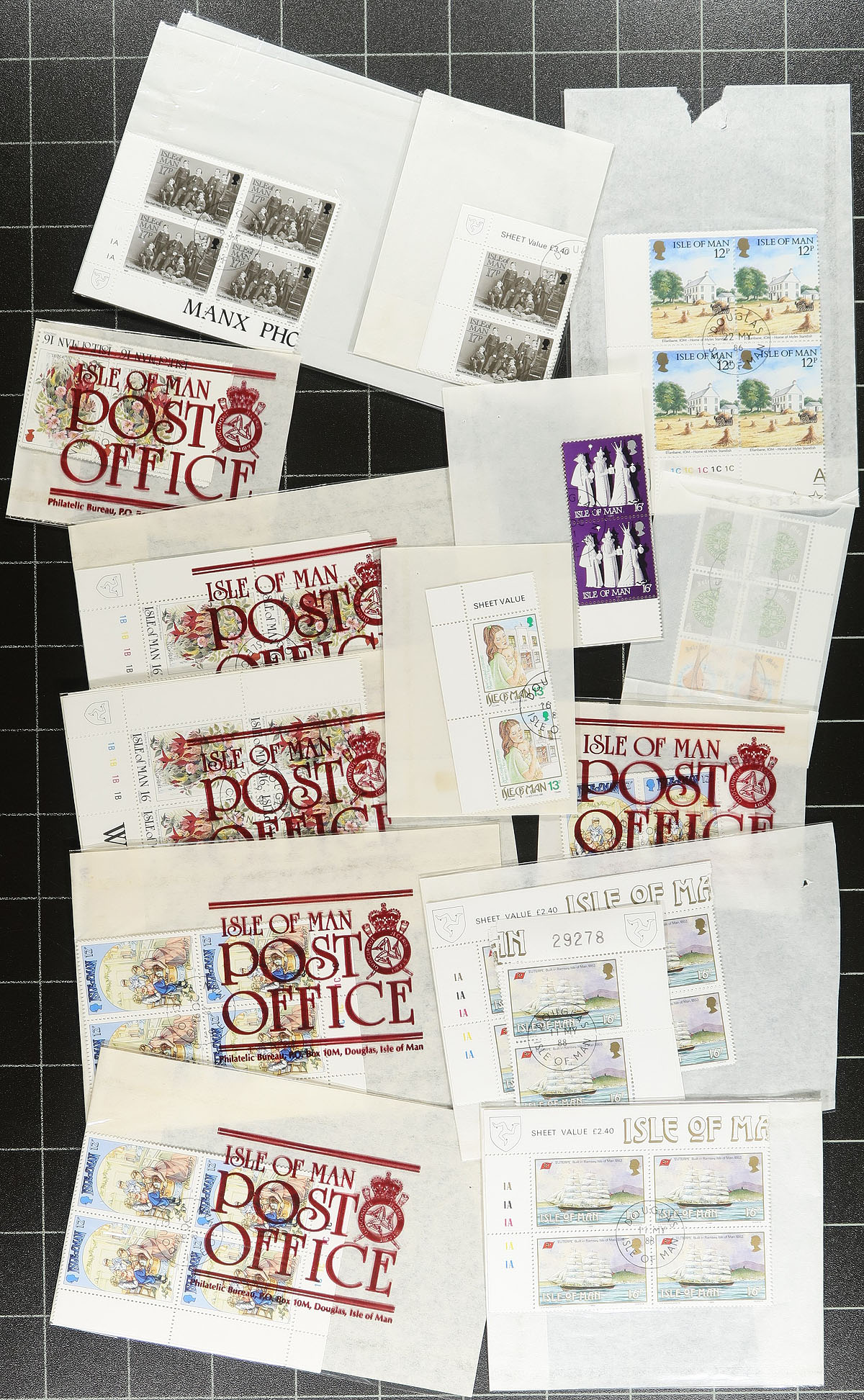 Nice collection / accumulation of few thousand used Isle of Man, 1976-1993, all with CTO cancels, ranging from Scott #86/561, noting mostly sets, many large blocks and souvenir sheets. A clean lot as almost every item is in original packaging (probably from the philatelic services), ideal for the Commonwealth, thematic, or topical collector. Owner's older 2013 Scott US$1,885.00 =