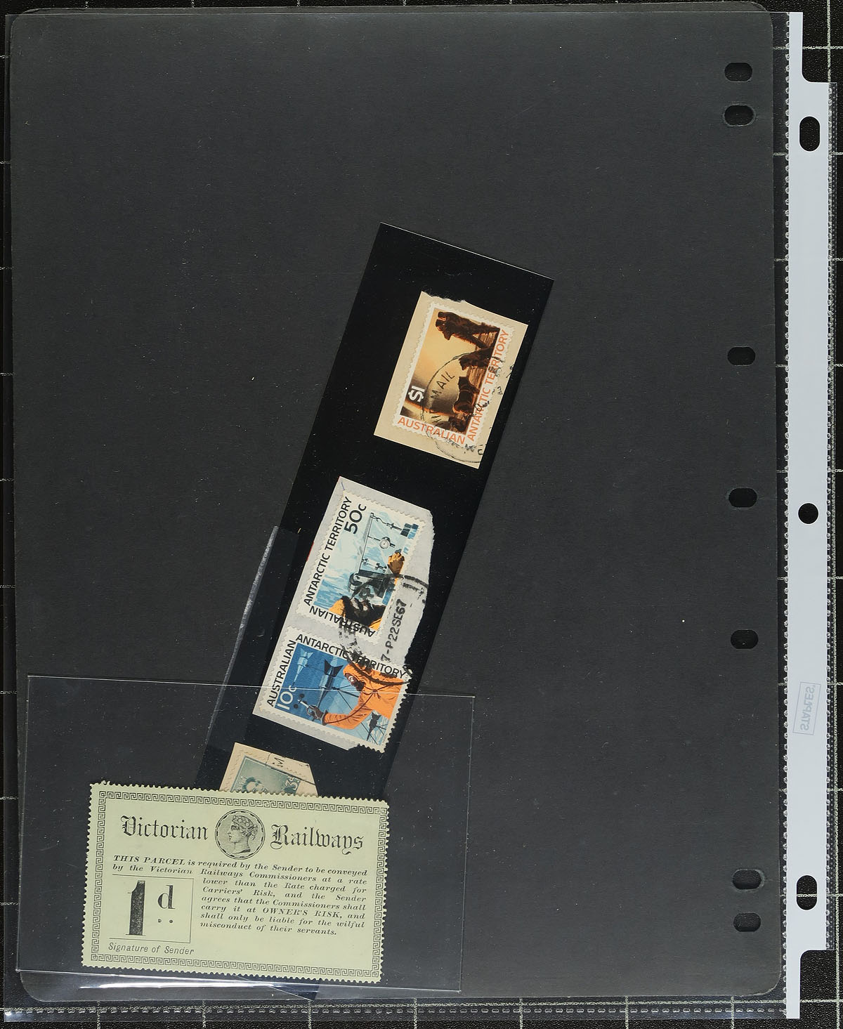Accumulation of used Australia and a few States, 1890's-1990's, with roughly 1,000 stamps in a variety of formats including album pages, 102 cards, stock pages and more. A spot check indicated the majority of material ranges from the 1900's to the 1950's, including officials and other "back of the book" material, varieties, a few Kangaroos, KGV Heads, and more. We note some singles ranging from $10 to $15 each, leaving potential finds to the dedicated collector, including better postmarks. A good lot for the Australia or worldwide used collector, overall fine to very fine. Estimate =
