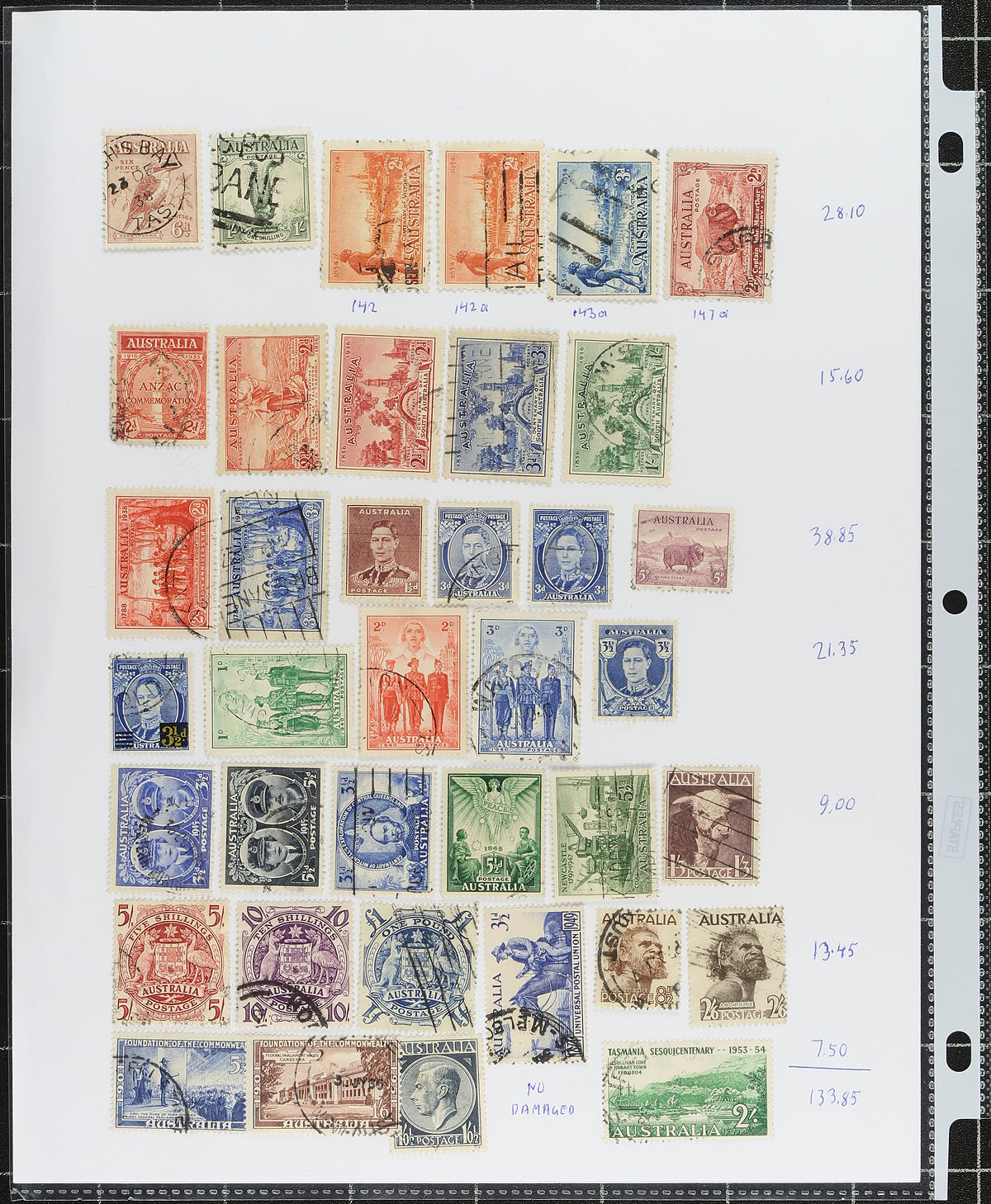 Accumulation of used Australia and a few States, 1890's-1990's, with roughly 1,000 stamps in a variety of formats including album pages, 102 cards, stock pages and more. A spot check indicated the majority of material ranges from the 1900's to the 1950's, including officials and other "back of the book" material, varieties, a few Kangaroos, KGV Heads, and more. We note some singles ranging from $10 to $15 each, leaving potential finds to the dedicated collector, including better postmarks. A good lot for the Australia or worldwide used collector, overall fine to very fine. Estimate =