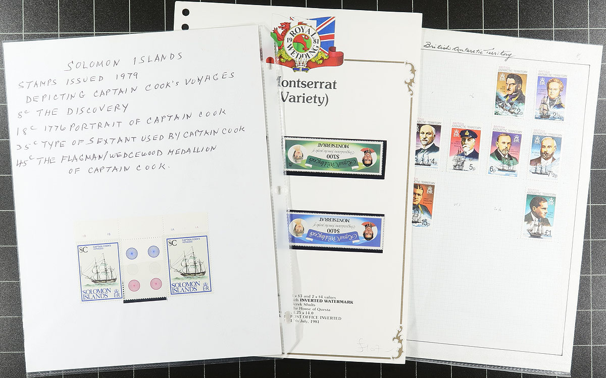 Group of mint British Commonwealth singles and sets, containing many hundreds of stamps in several stock pages. The stamps generally range from KGVI reign onwards, noting gutter pairs, a few booklets and souvenir sheets, along with many sets and partial sets. A spot check indicated better representation from British West Indies, with some material cataloguing $10 and up, and a mix of never hinged and hinge stamps. A nice lot for all collectors. Estimate =