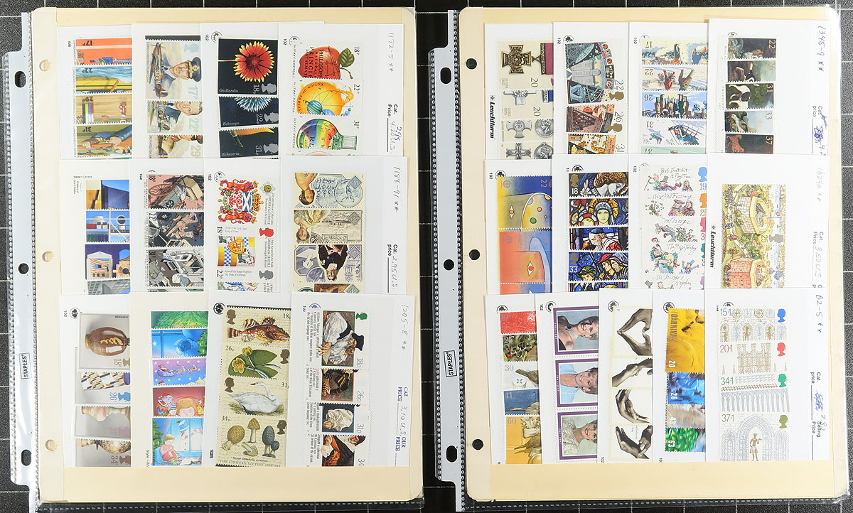 Accumulation of mint Great Britain, 1920's-1990's, containing many hundreds of stamps in several stock pages. The lot has a little bit of everything including singles, sets, year set., presentation sets, multiples, etc. The majority of stamps are never hinged from the 1970's onwards, with some singles and sets cataloguing $5 to $15 each. We estimate a good amount of face value (roughly £175), which will appeal to collectors and dealers alike. Estimate =