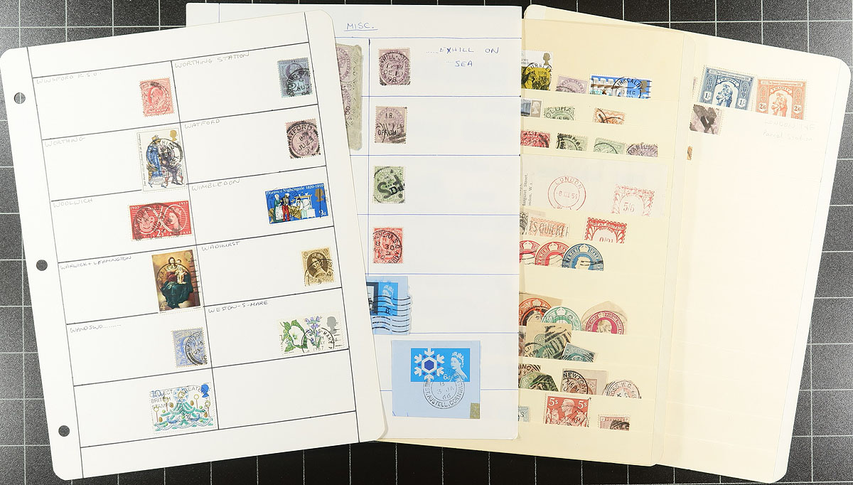 Accumulation of used Great Britian, 1850's-1990's, containing many hundreds of stamps in a variety of formats including stock and album pages, etc. The group has a bit of everything including several Victoria issues, noting a few cataloguing $10 to $20 and up each, identified town postmarks, along with a few Seahorses, up to more modern issues up to the 1990's. A fairly high cataloguing lot which could hold a few surprises for the dedicated collector. Overall fine to very fine. Estimate =