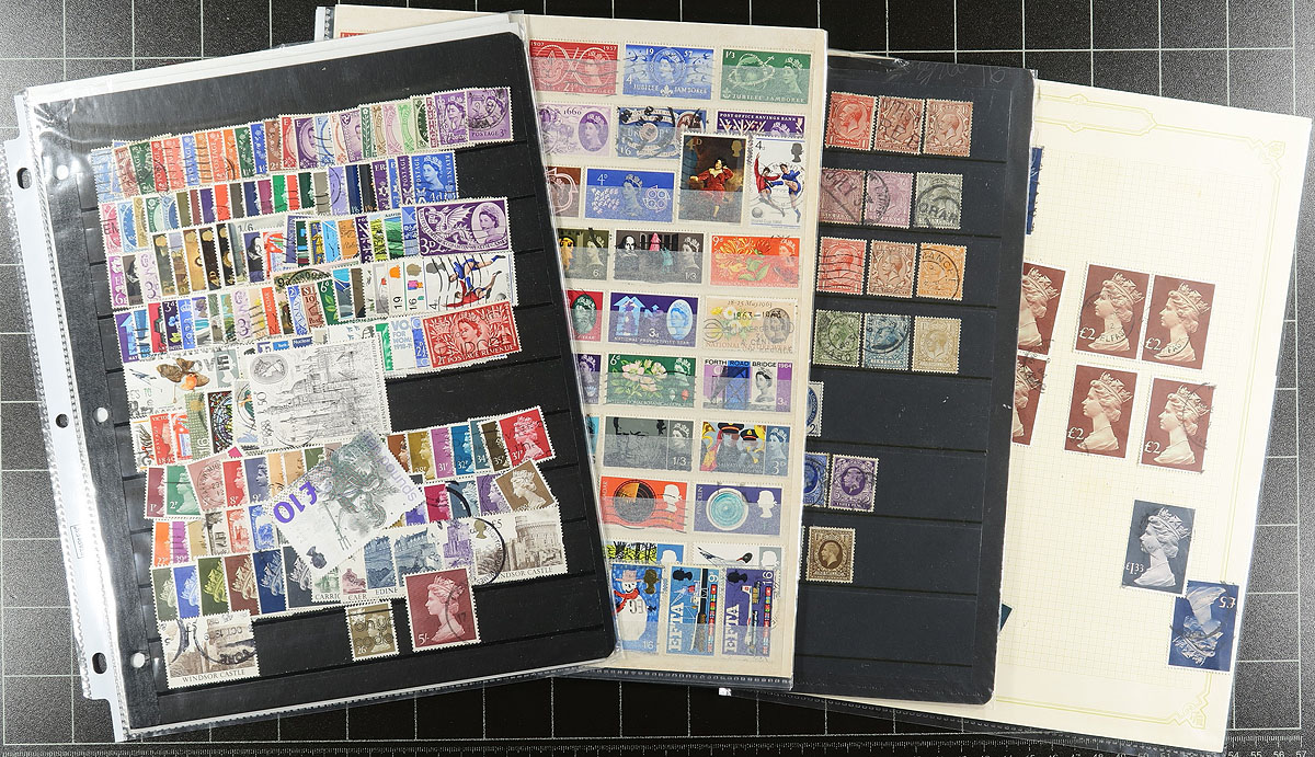 Accumulation of used Great Britian, 1850's-1990's, containing many hundreds of stamps in a variety of formats including stock and album pages, etc. The group has a bit of everything including several Victoria issues, noting a few cataloguing $10 to $20 and up each, identified town postmarks, along with a few Seahorses, up to more modern issues up to the 1990's. A fairly high cataloguing lot which could hold a few surprises for the dedicated collector. Overall fine to very fine. Estimate =
