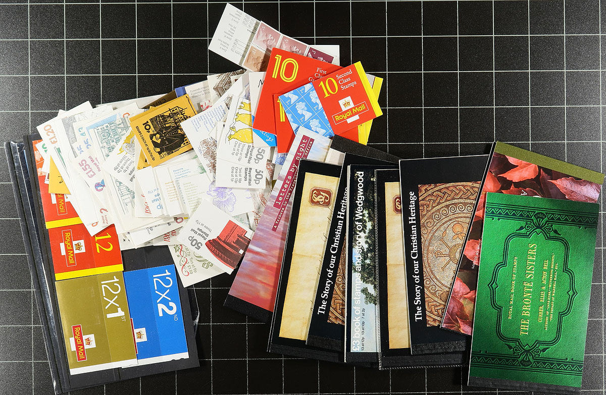 Group of roughly 80 Great Britain booklets, 1970's-2000's, containing folded and prestige booklets, with a spot check indicating a few booklets cataloguing £10 to £15 each. Owner's 2023 Stanley Gibbons Concise catalogue value totals £354.00 ($665.80 CDN). We estimate face value in excess of £150, noting 1ST x82, and 2ND x66 (both majority being Machin issues). A nice clean lot with a variety of purposes. Estimate =