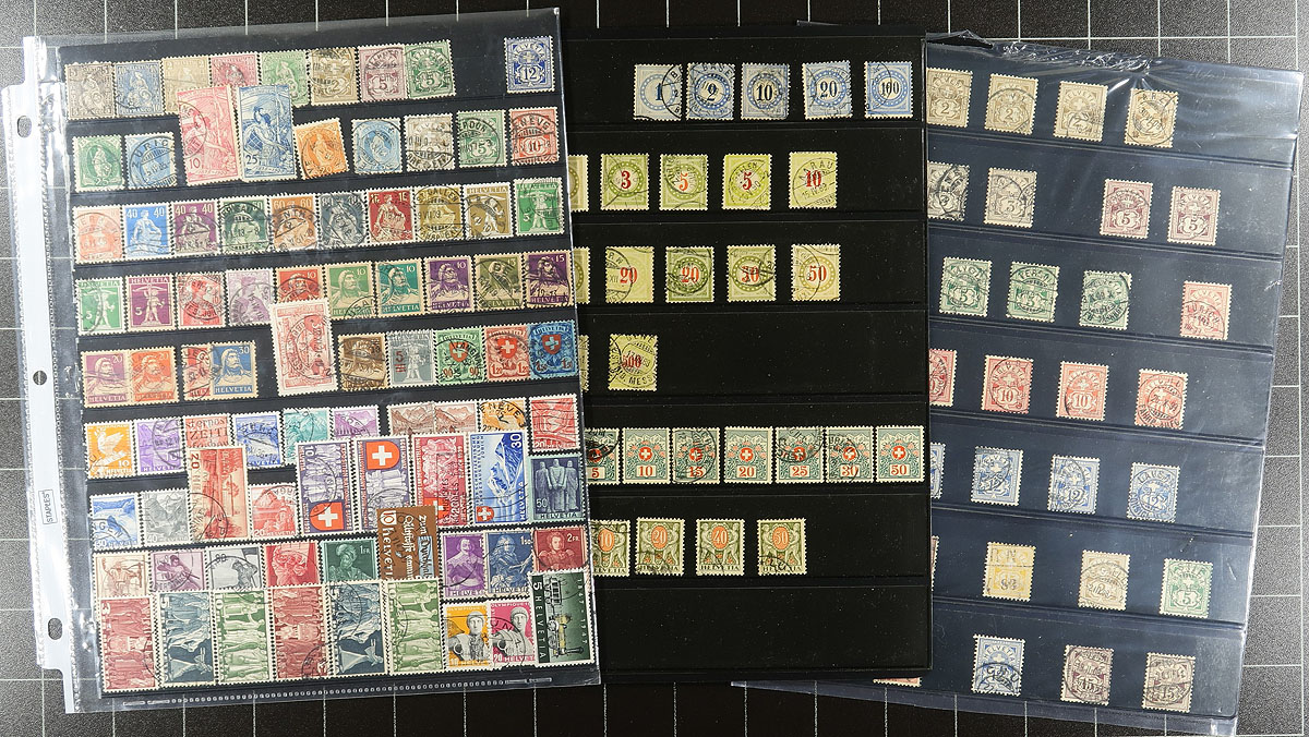 Accumulation of used Switzerland, 1882-2016, containing roughly 1,000 stamps in over in over 20 stock, manila, or album pages. The lot generally ranges from Scott #69/1609 (noting a few earlier issues), along with back of the book issues including semi-postals and postage dues. A spot check indicated a few stamps and partial sets cataloguing in the $10 to $20 range each, including J28 (c.v. $67), leaving potential finds to the dedicated collector. Postmark interest includes a variety of town cancel types. A nice lot for the Switzerland or worldwide collector, overall fine to very fine. Owner's older 2018 Scott US$1,719.00 =