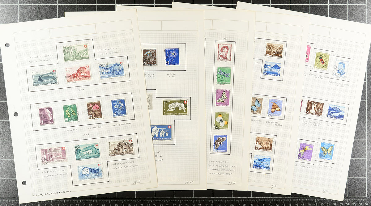 Accumulation of used Switzerland, 1882-2016, containing roughly 1,000 stamps in over in over 20 stock, manila, or album pages. The lot generally ranges from Scott #69/1609 (noting a few earlier issues), along with back of the book issues including semi-postals and postage dues. A spot check indicated a few stamps and partial sets cataloguing in the $10 to $20 range each, including J28 (c.v. $67), leaving potential finds to the dedicated collector. Postmark interest includes a variety of town cancel types. A nice lot for the Switzerland or worldwide collector, overall fine to very fine. Owner's older 2018 Scott US$1,719.00 =