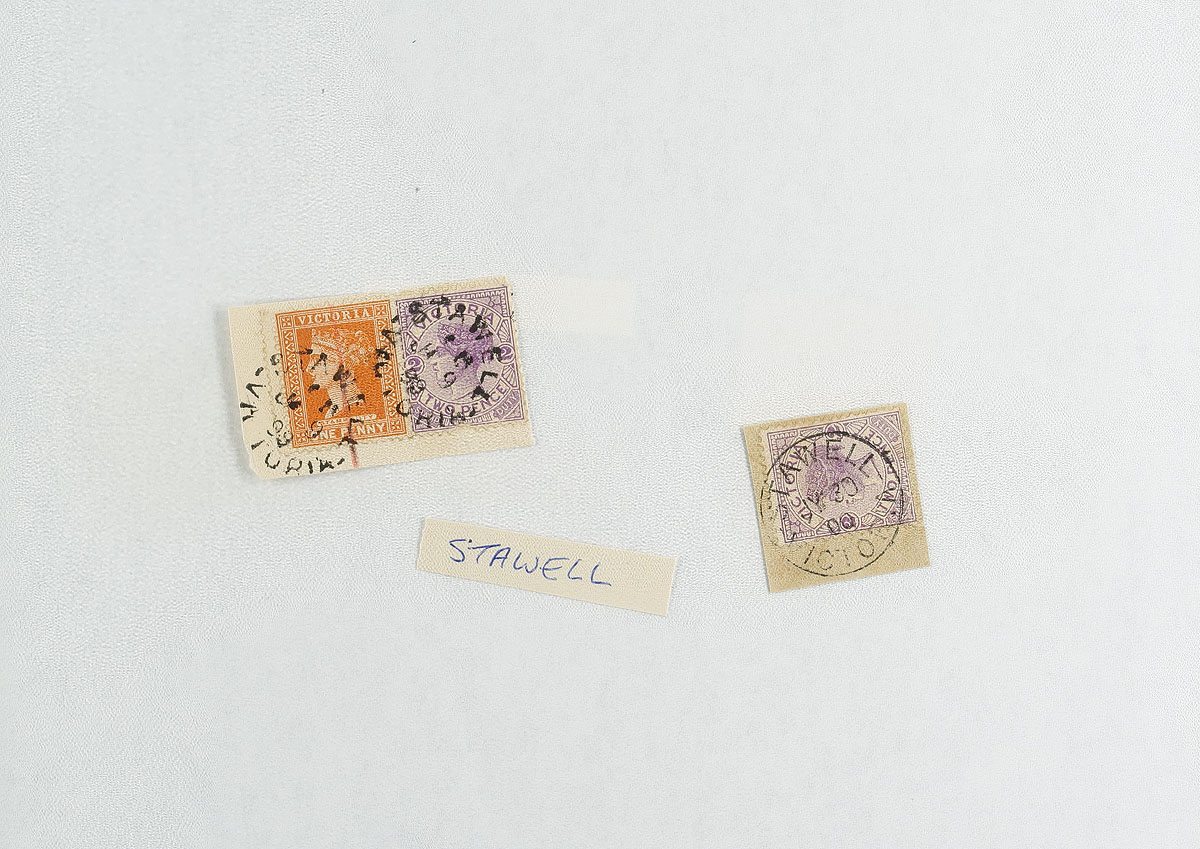 Victoria Postmarks Part B. Collection of postmarks from Victoria State, Australia, 1890's-1970's, containing a few hundred stamps (on and off piece), and a handful of covers in a thick binder. The lot is organized alphabetically containing over 85 different town postmarks ranging from Melton to Y (represented by at least one stamp), noting several Victorian State stamps, with the majority of material ranging from the 1890's to the 1950's. Just a few towns include Minyip, Moonee Ponds, Reedy Creek, Woomelang, Yackandawdah, and more. The lot includes maps of all the locations and towns within the collection. An interesting lot for the specialist, with online photos showing a small sampling. Estimate =
