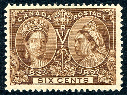 F/VF mint Lightly Hinged example of the 6c yellow brown 1897 Queen Victoria Jubilee issue. Post Office fresh colour. A premium stamp. 2025 Scott Classic US$220.00 =