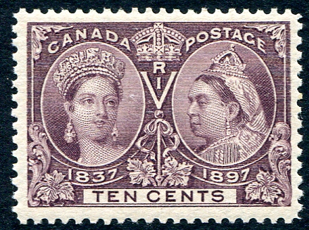 F/VF (very close to VF) mint Never Hinged example of the 10c brown violet 1897 Queen Victoria Jubilee issue. A very attractive example of this tough issue. 2025 Scott US$400.00 =