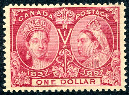 Fresh F/VF (near VF) centered mint hinged example of the 1897 issue $1.00 lake Queen Victoria Jubilee. Great colour and appearance, with very reasonable hinging. 2025 Scott US$750.00 =
