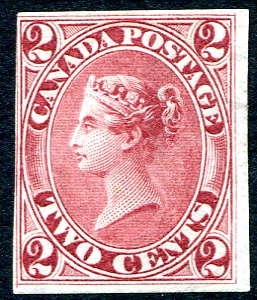 VF imperforate proof of the QV 1864 issue 2c dark rose on India Paper. A very attractive example of this desirable early proof. 2024 Unitrade =