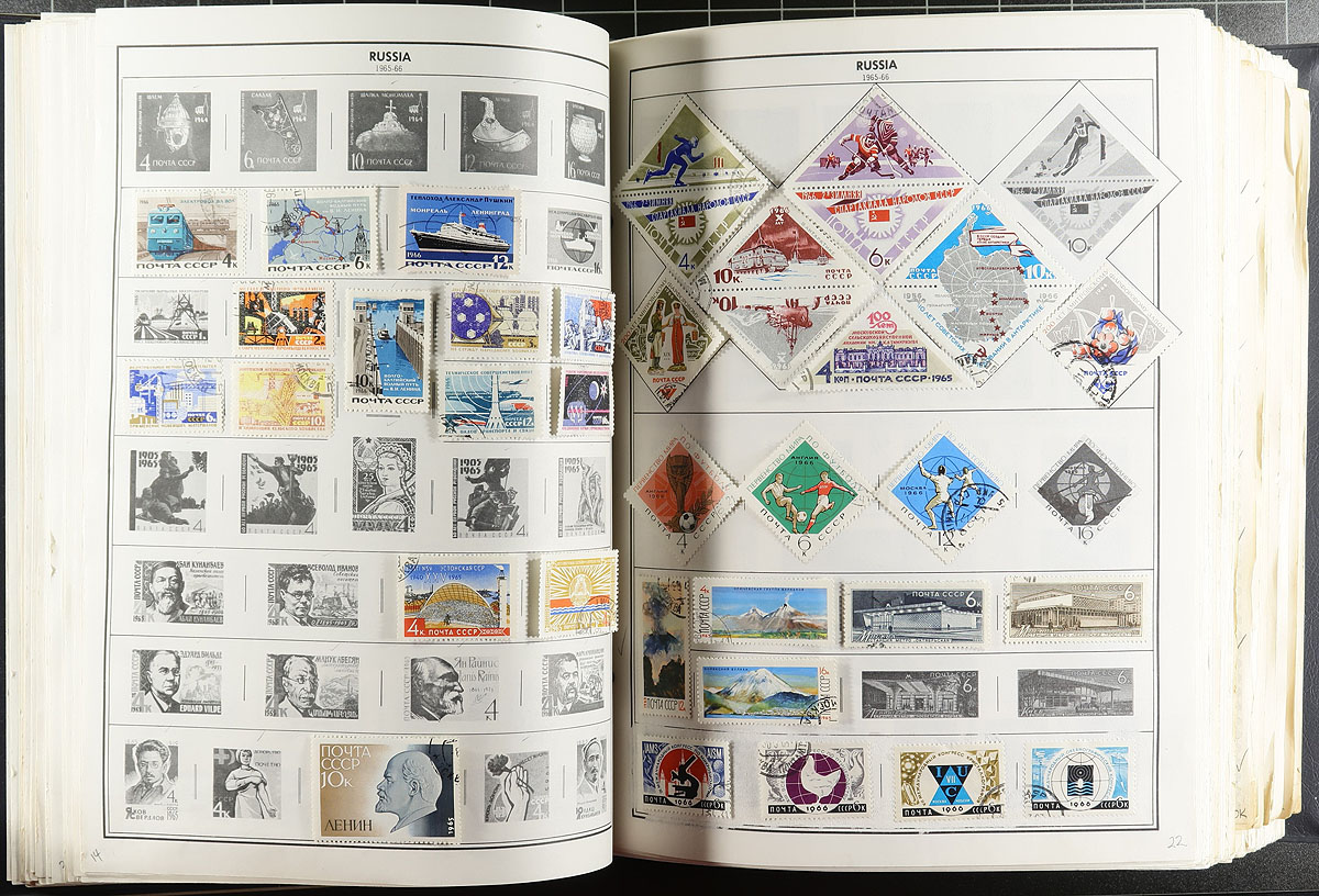 "R to Z" Collection in Fat "Standard" Album. This lot is the much anticipated sixth and final volume of an extensive worldwide collection. This instalment consists of 7,019 different stamps from 97 different countries/colonies (Ruanda-Urundi through Zanzibar). All in all, a high quality and nicely balanced offering with particular strength noted in Russia, South Africa, Switzerland, Syria, Thailand, Togo, Turkey, Upper Volta and Vatican City. See the scan of the hand written inventory for the complete list of countries and stamp counts. Estimate =