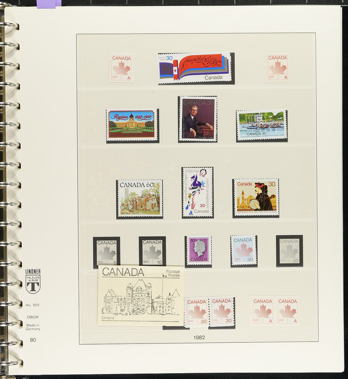 Linder hingeless album with pages for 1975-1988, partially filled with mint Never Hinged singles, sets, booklets and panes from the period along with a smattering of used (not counted). While the album alone would have a high original retail, we have valued this for the usable face value postage alone. Total face value =