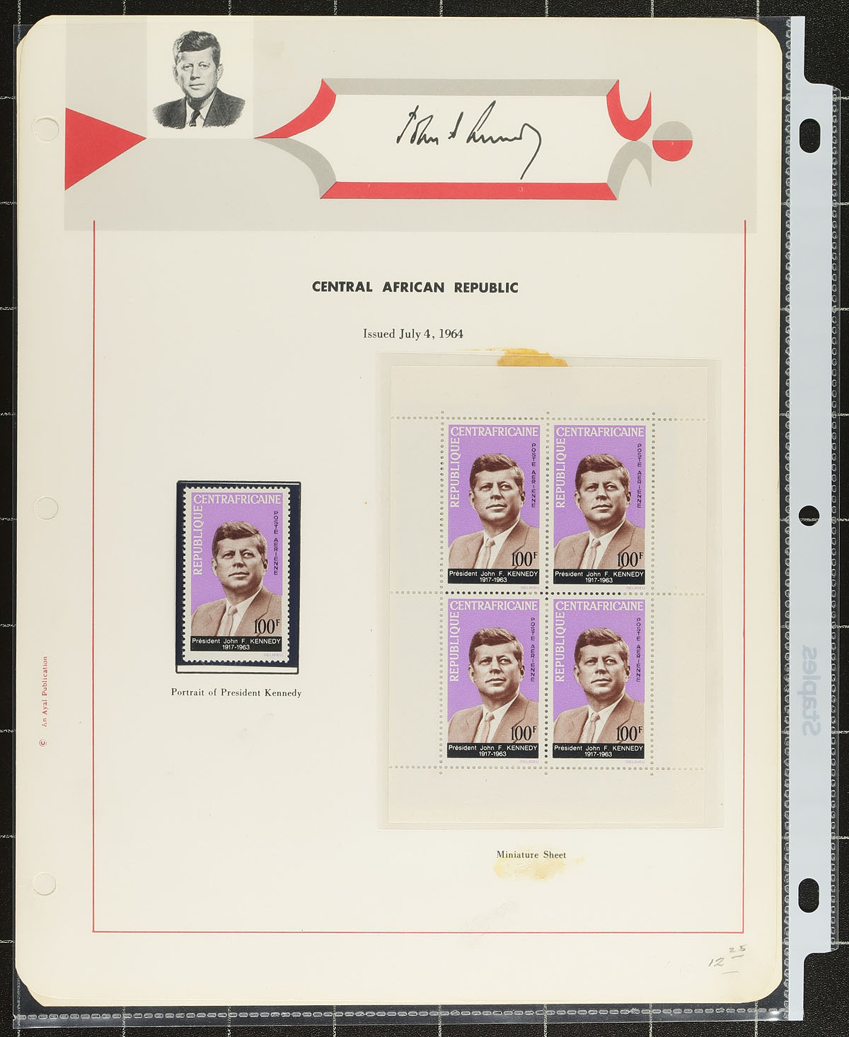 Kennedy Memorial Topical Collection. An intriguing collection of JFK memorial stamps, from a variety of Nations including Central Africa, Congo, Honduras, Sharjah, Umm Al Qiwain, Cameroon, Mali, Guinea, Jordan, Mexico, Panama, Sierra Leone, Ras Al Khaima, etc. A variety of formats including singles, souvenir sheets, sets and covers. Best is the Cameroun 1969 C111-C116 Type I overprint (also featuring Gandhi and Martin Luther King) which catalogues US$300.00 alone. All identified on pages / stockpages, with several "odd balls" not valued. 2025 Scott US$669.05 =
