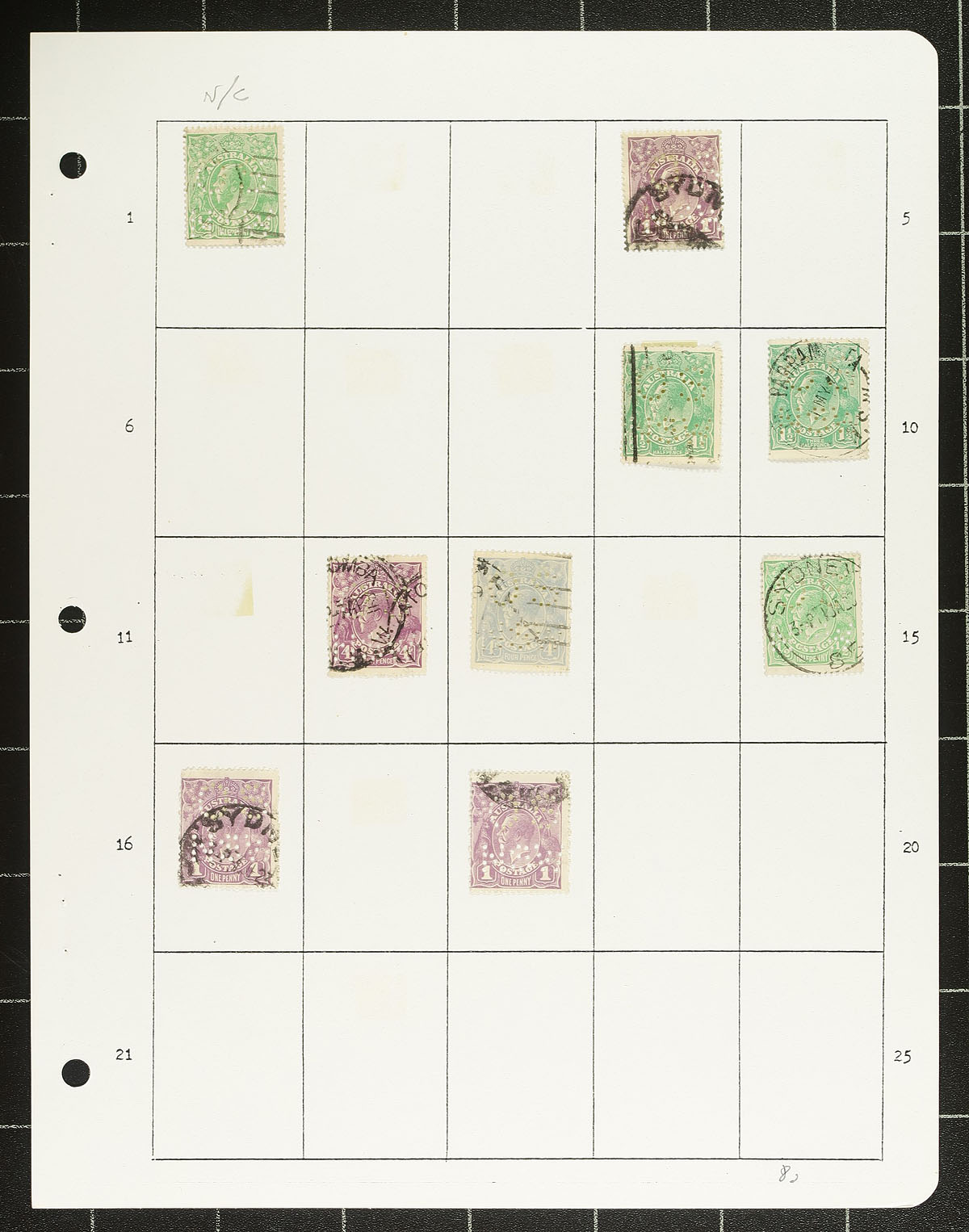Assemble of 140 used stamps with either "OS" overprint or "OS" / "NSW OS" perfins on Roos and George V heads. Some minor duplication and neatly arranged and identified on pages (for what the owner could do). A total of 72 stamps are priced (2024 Scott US$423.55), and 68 stamps are not priced / catalogued. An interesting assembly to work through. Estimate =